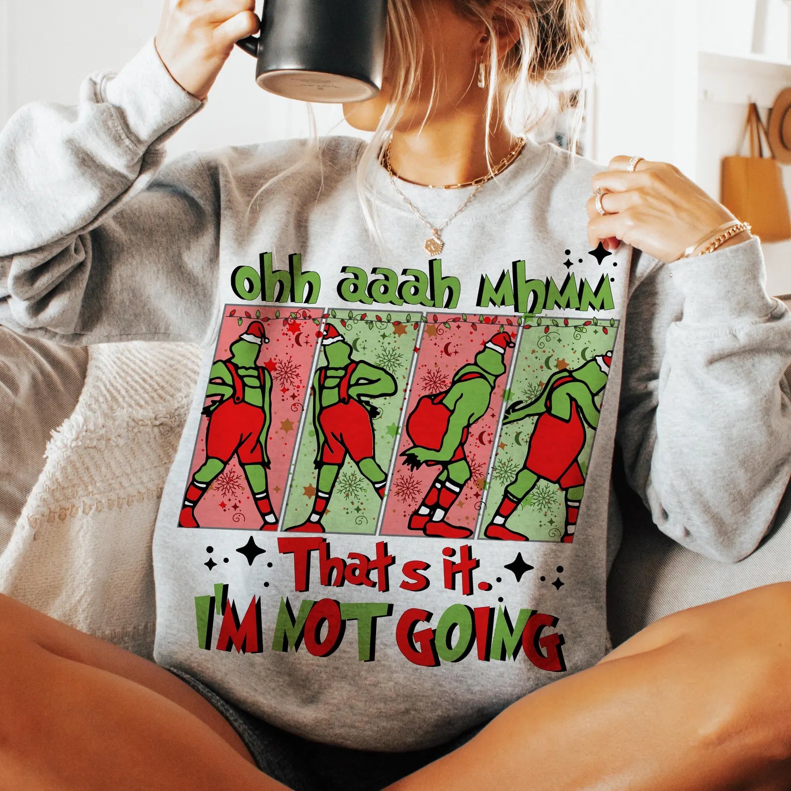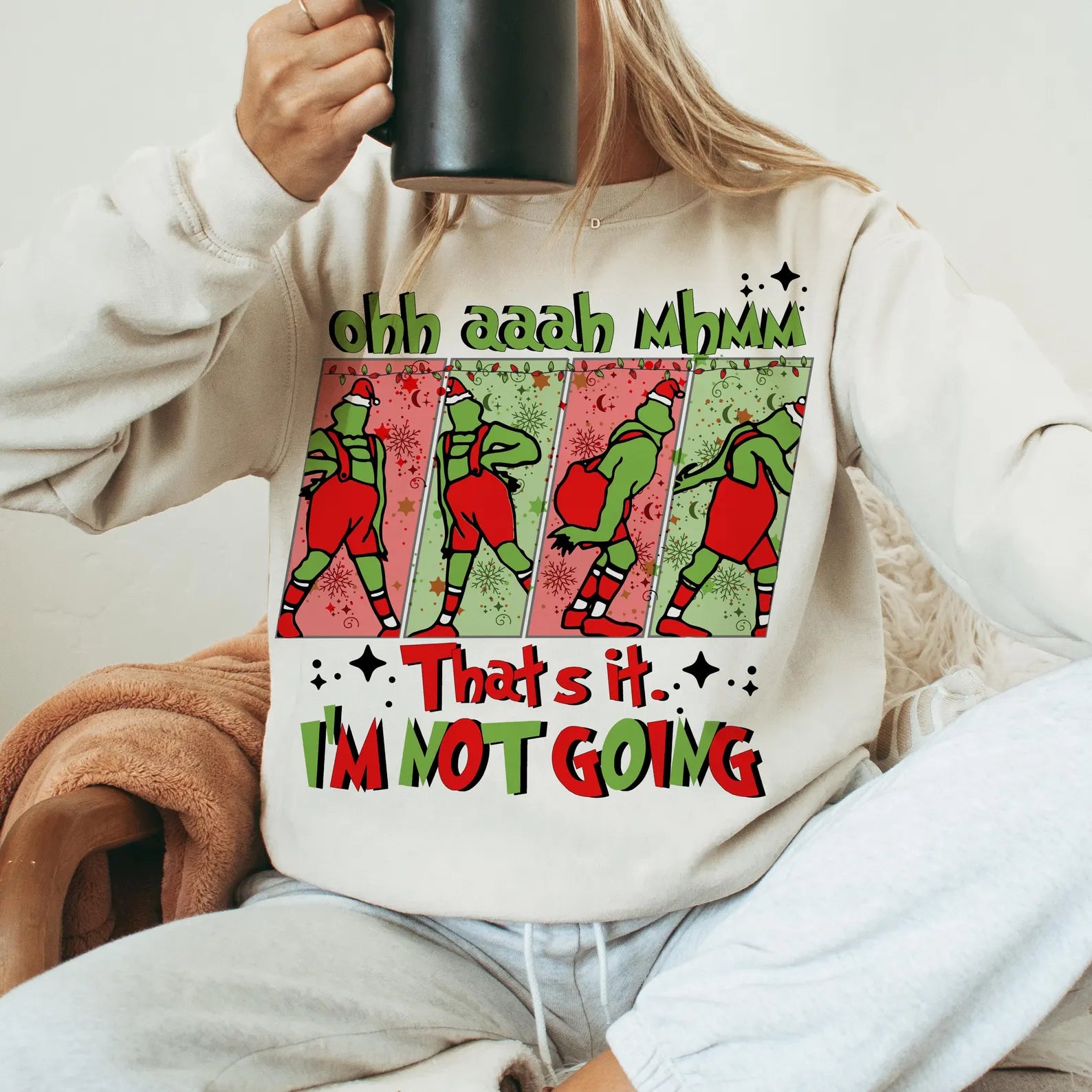This cozy Grinch-inspired sweatshirt is made for those who love Christmas but also love staying home in comfort. Featuring a hilarious dancing Grinch print and bold holiday colors, it’s the perfect mix of festive and relatable.
