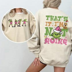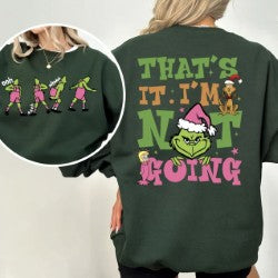 Get cozy, comfy, and a little Grinchy this holiday season with our “That’s It, I’m Not Going” Grinch Christmas Sweatshirt!