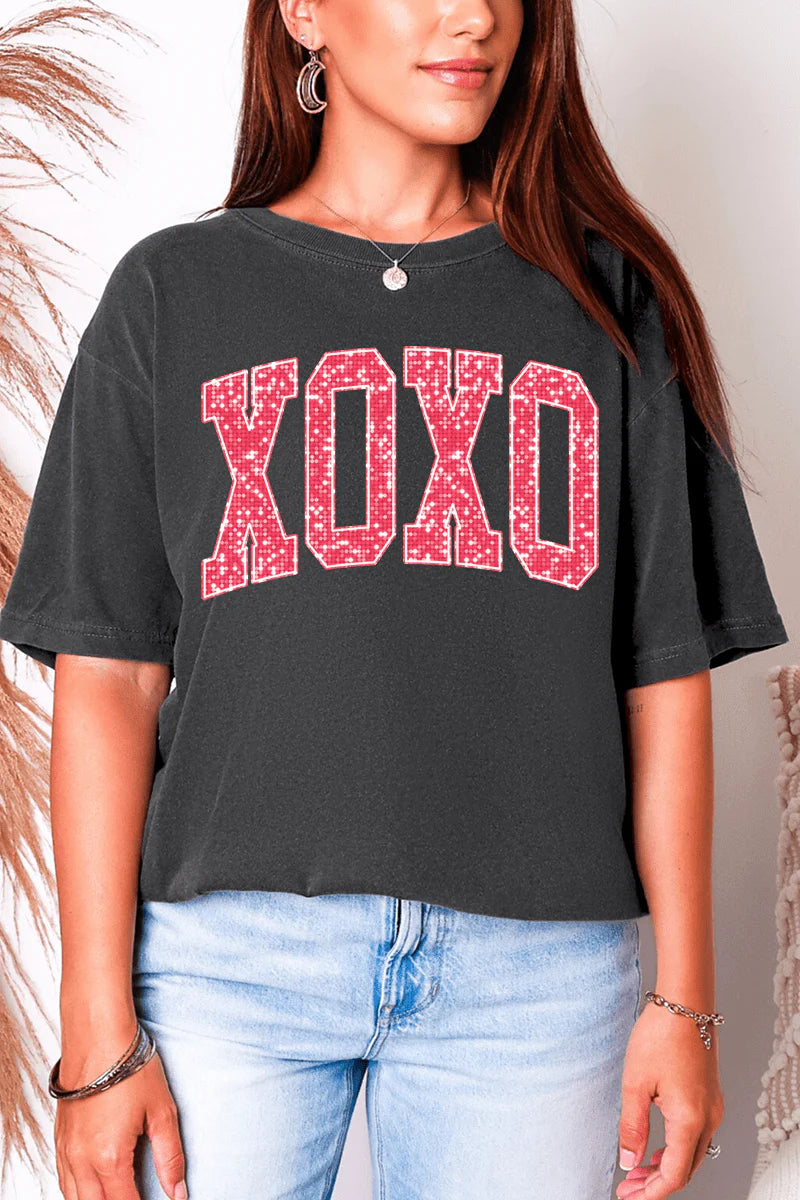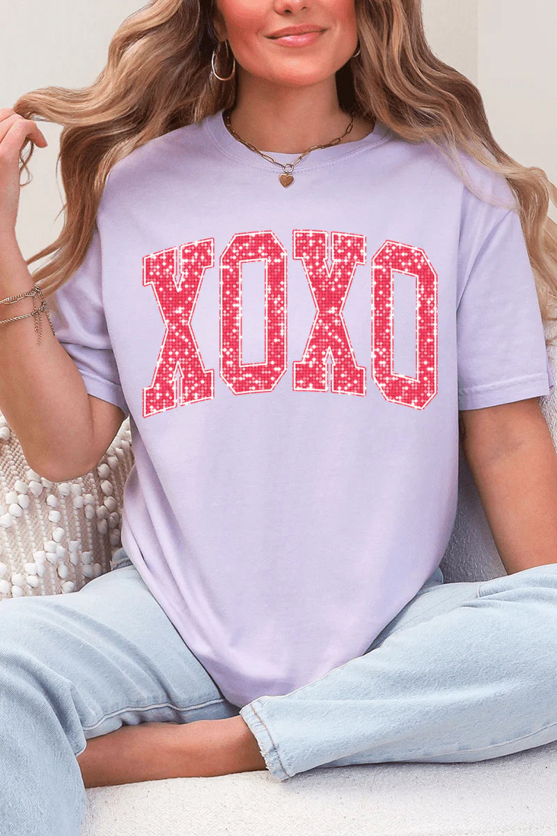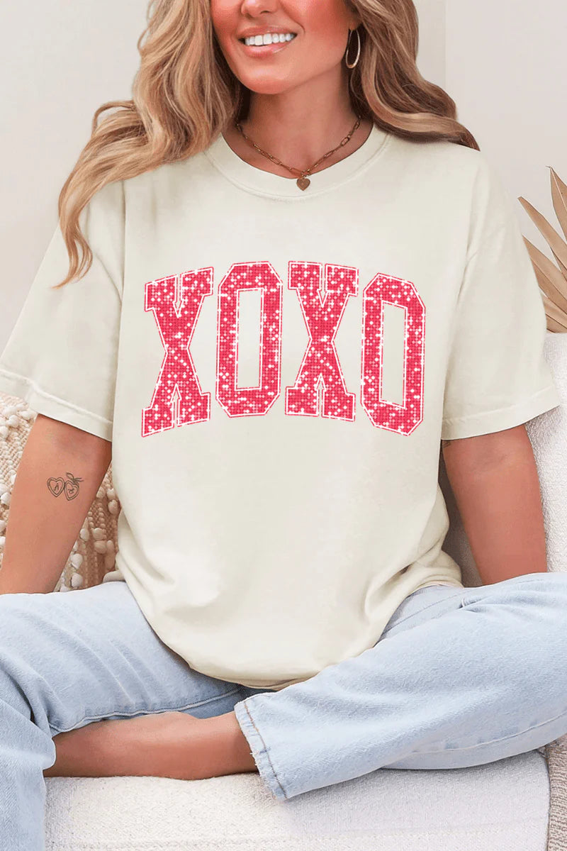 Bold, flirty, and effortlessly cozy—our Glitter XOXO Tee is the perfect statement piece for love season and beyond. Designed with standout pink glitter varsity-style XOXO lettering, this tee adds the right amount of sparkle while keeping things comfortable and casual.